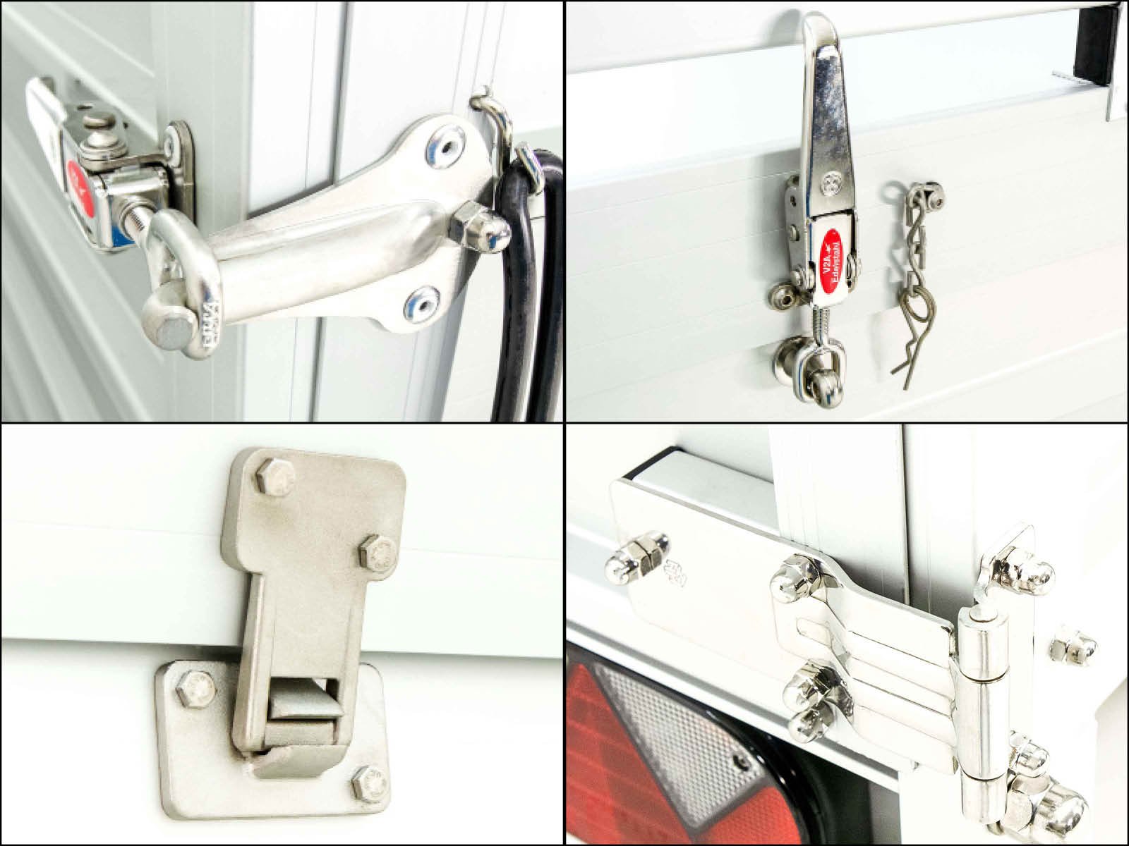 Particularité : Raccord à vis V2A 8 mm, hayon comme porte latérale, fixations en acier inoxydable sur le hayon, fabriqué en Allemagne