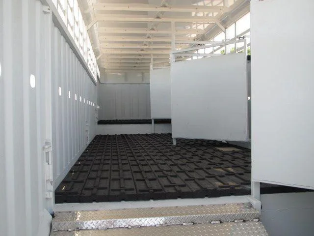 Remorque à bétail 2025 38’x102″ à chargement au sol, prête à travailler pour vous ! Peut contenir 800 livres par pied (38 à 800 lb pour les yearlings / 30 à 1000 lb pour les vaches), pont supérieur de 10′, pont principal de 22′, boîte arrière de 6′ avec rampe pleine largeur, porte de chargement arrière coulissante (capacité à s’ouvrir complètement), (4) feux intérieurs et (2) feux de recul arrière, (2) compartiments de 11″, (3) barrières de séparation, application Gator-Hyde à l’intérieur, plancher en caoutchouc à crampons avec nettoyages, suspension pneumatique avec soupape de décharge manuelle, 40 trous ovales perforés, pneus 255/70R22.5, roues en acier, 50 000 pnb, toit de remorque blanc, fond de remorque noir, barrières à loquet automatiques, palier à 2 vitesses, Largeur intérieure de 97 po, nettoyages de plancher, application Coreshield à l’intérieur, déflecteurs de nervures