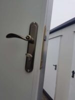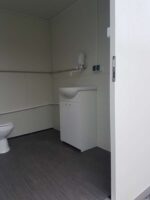 Structure en deux cabines égales (hommes/femmes). Les deux zones se composent d’une porte d’entrée avec serrure personnelle, de 2x escaliers galvanisés.