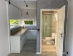 – Parois intérieures : panneaux sandwich 80 mm en polystyrène Polystyrène avec mur en plaques de plâtre, carrelage dans la salle de bain)