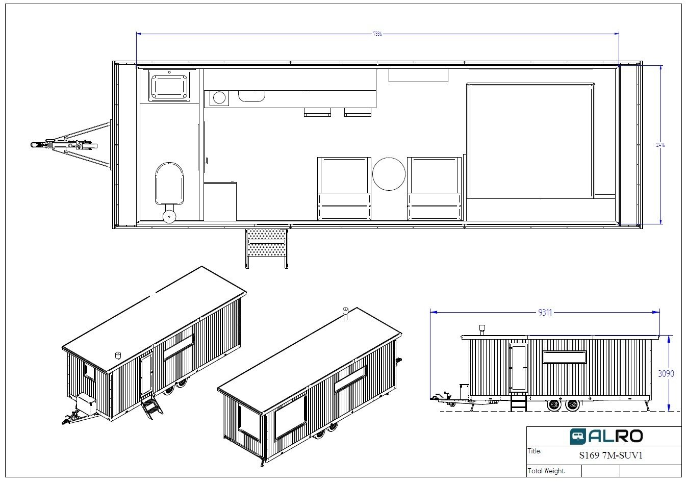 Vous souhaitez profiter du calme de la nature, mais ne voulez pas faire de compromis sur le confort ? Découvrez la collection de Mobile Home Alro – l’option la plus luxueuse et la plus polyvalente du marché. Alro n’est pas seulement élégant, mais aussi fonctionnel. La cabine S169 dispose d’un coin repas, d’une cuisine, de toilettes et d’une chambre pour deux personnes, d’un coin salon avec cheminée et TV. Revêtement extérieur en bois véritable, système d’eau intérieur et extérieur. Que vous ayez besoin d’une cabine principale, d’une cabine d’invités ou d’une cabine de sauna moderne, cette remorque cabine répondra à vos attentes. Chaque Mobile Home Alro est toujours équipée selon les souhaits du client et les caractéristiques spécifiques du site. Le cadre est réalisé en tôle d’acier galvanisée à chaud et assemblé par des assemblages boulonnés. Le système électrique et les lumières sont résistants aux intempéries.